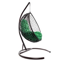 Подвесное кресло Кокон Капля складной ротанг (коричневый/зеленый)