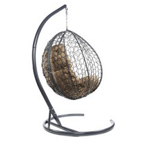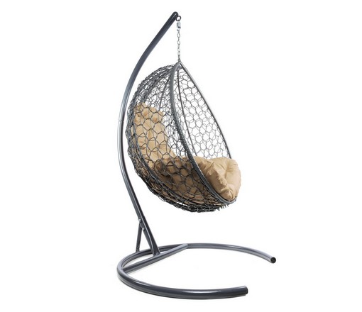 Подвесное кресло Кокон Капля складной ротанг (серый/бежевый)