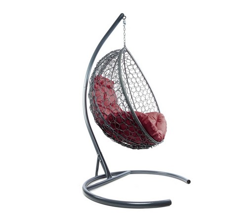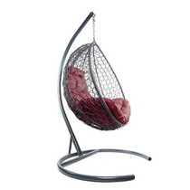 Подвесное кресло Кокон Капля складной ротанг (серый/бордовый)