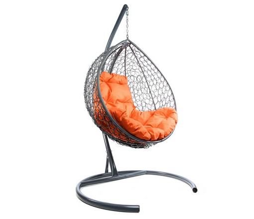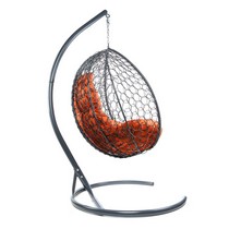 Подвесное кресло Кокон Капля складной ротанг (серый/оранжевый)