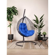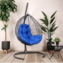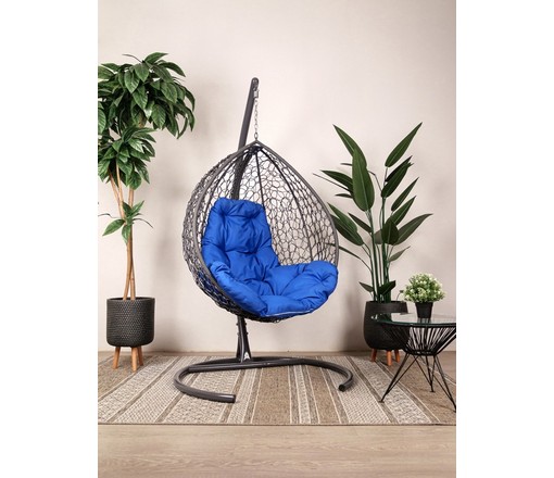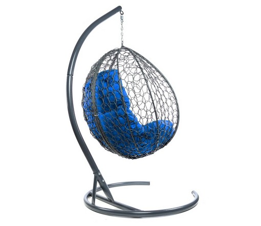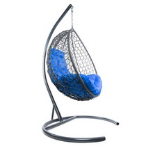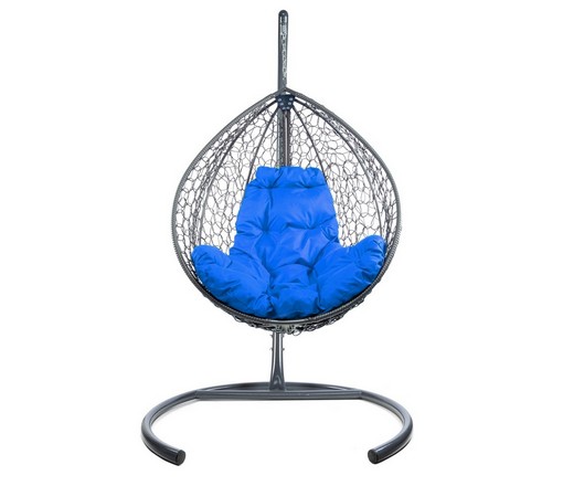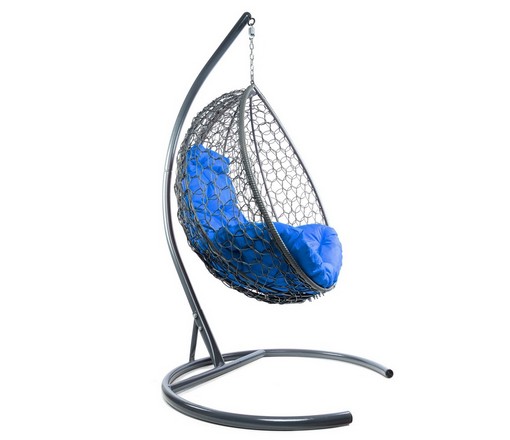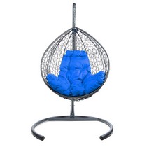 Подвесное кресло Кокон Капля складной ротанг (серый/синий)