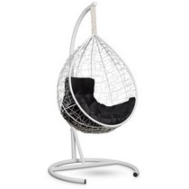 Подвесное кресло-кокон SEVILLA Comfort из ротанга (белый/черный) с каркасом