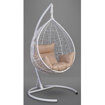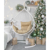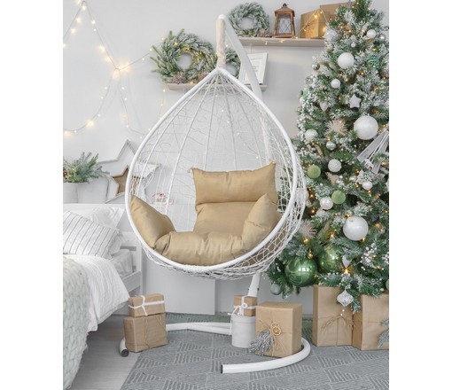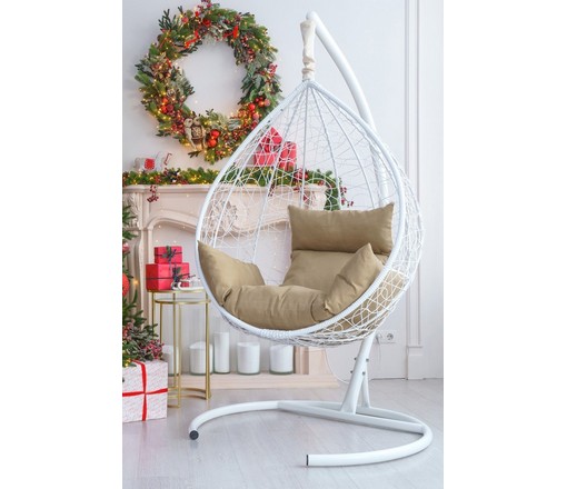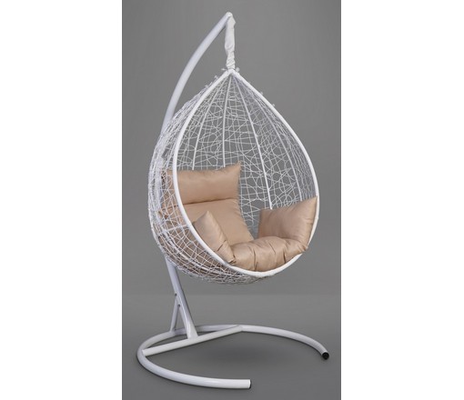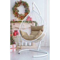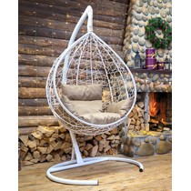 Подвесное кресло-кокон SEVILLA из ротанга (белый/бежевый) с каркасом