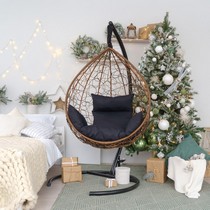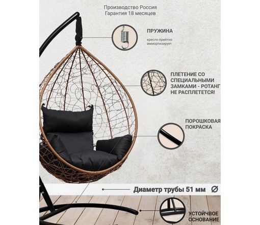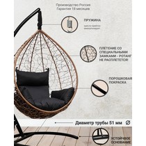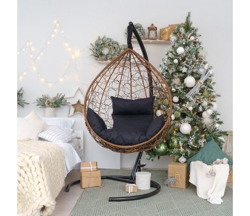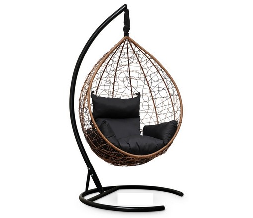 Подвесное кресло-кокон SEVILLA из ротанга (горячий шоколад/черный) с каркасом