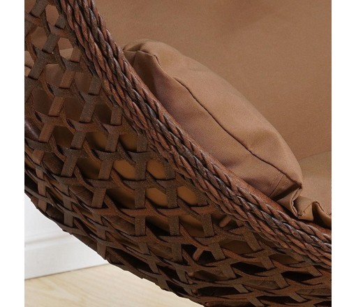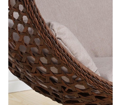 Материалы изделия: каркас - сталь, плетение - искусственный ротанг, подушка - ткань с водоотталкивающей пропиткой.