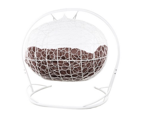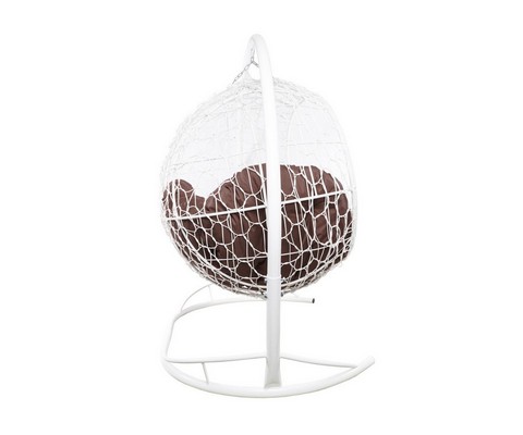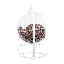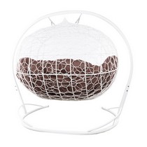 Подвесной диван УЛЕЙ с ротангом (белый с коричневой подушкой)