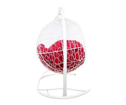 Подвесной диван УЛЕЙ с ротангом (белый с красной подушкой)