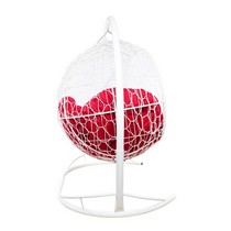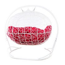 Подвесной диван УЛЕЙ с ротангом (белый с красной подушкой).
