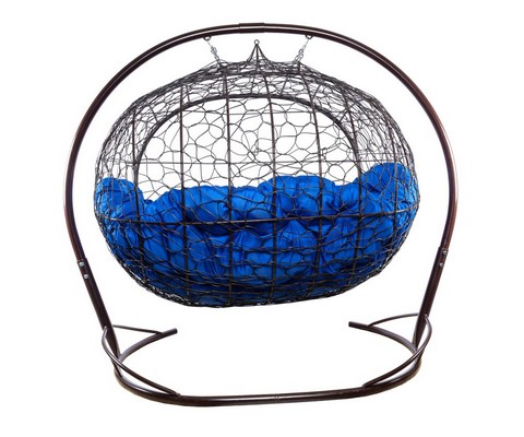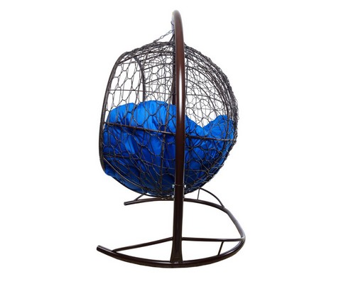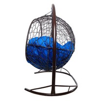 Подвесной диван УЛЕЙ с ротангом (коричневый с синей подушкой)