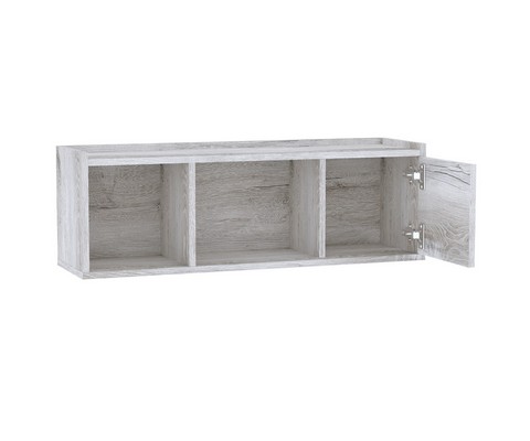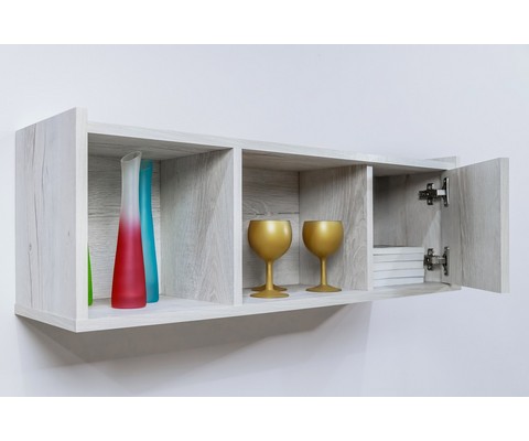 Небольшая навесная полка Флекс 11 с двумя открытыми нишами и одной с распашной дверкой.