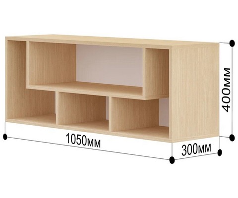Полка навесная ПН-1 венге / дуб молочный имеет 4 открытых ниши.