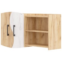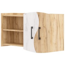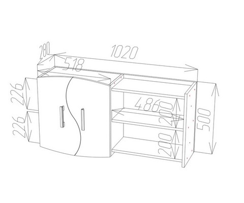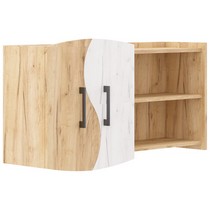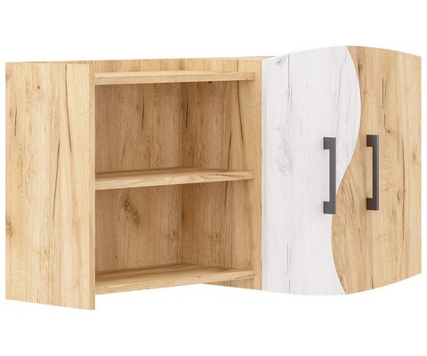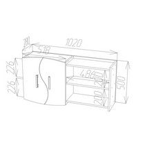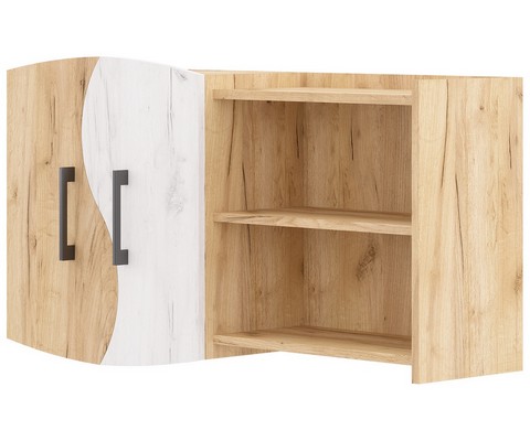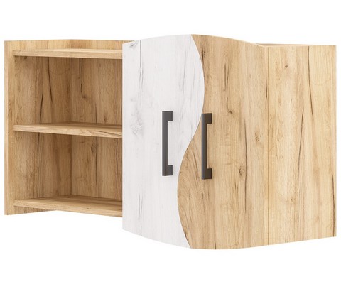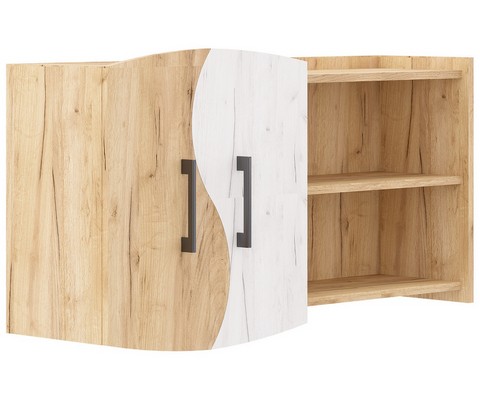 Функциональная навесная полка ПН-3 с фигурным фасадом оснащена: три полки, глухой распашной шкафчик на две ниши.