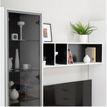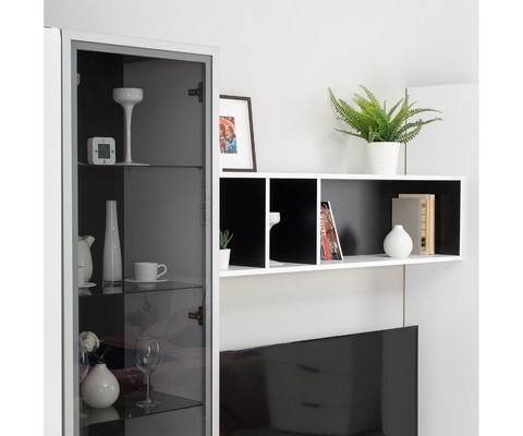 Навесная полка Сидней 15.57 состоит из широкой ниши, разделенной на три асимметричных отделения.
