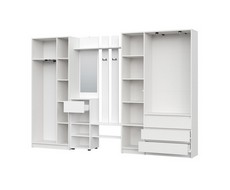 Включает вешалку с зеркалом, трехстворчатый и двухстворчатый шкаф.