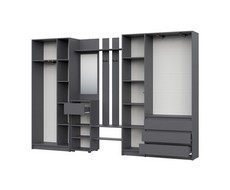 Включает вешалку с зеркалом, трехстворчатый и двухстворчатый шкаф.