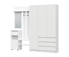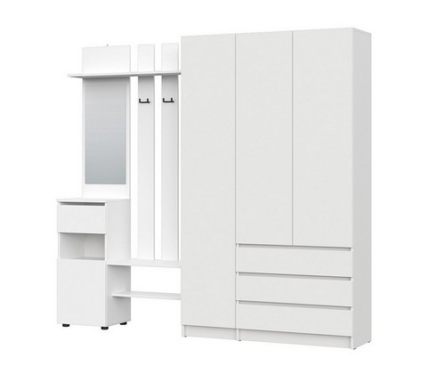 Включает вешалку с зеркалом и трехстворчатый шкаф.