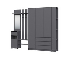 Комплект обеспечивает раздельное хранение для всех категорий вещей: от объемной одежды и обуви до аксессуаров и сезонных предметов, создавая при этом целостную и упорядоченную композицию.