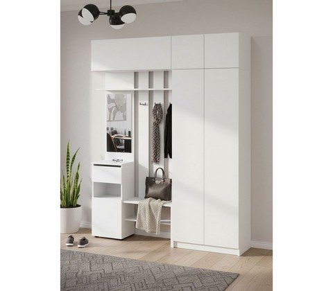 Комплект решает ключевые задачи: размещение верхней одежды и аксессуаров, хранение обуви и сезонных вещей, а также создание удобной зоны с зеркалом.