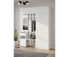 Включает вешалку с зеркалом, навесной шкаф, двухстворчатый шкаф и широкий навесной модуль.