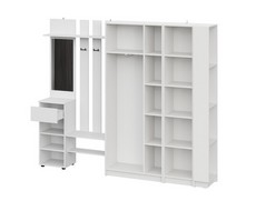 Включает вешалку с зеркалом, двухстворчатый шкаф, пенал, а также угловое завершение.