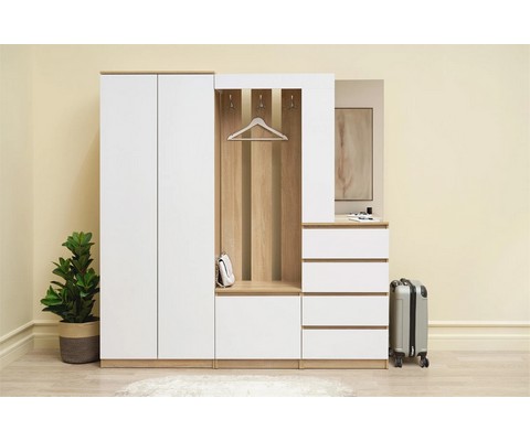 Прихожая Челси (белый глянец холодный, дуб сонома) идеально сочетает стиль и функциональность.