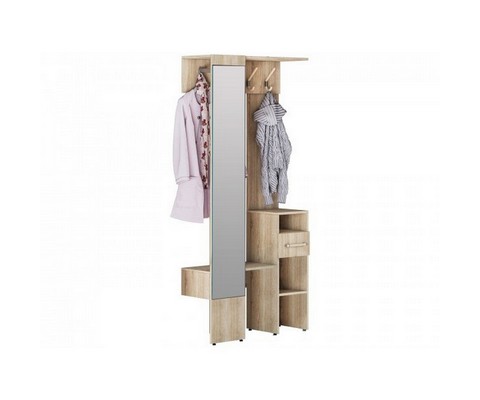 Прихожая Лига выглядит компактно и обладает всем необходимым функционалом. Изящность линий гармонично сочетается с теплым оттенком и фактурой дерева.