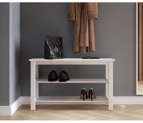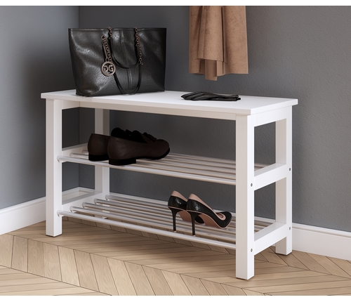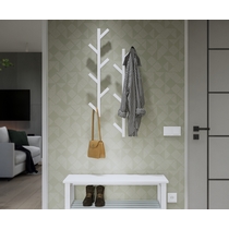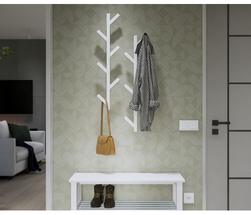 Комплект состоит из двух настенных вешалок-елочек и обувницы с сиденьем, выполненных в едином дизайне и универсальном белом цвете.