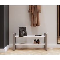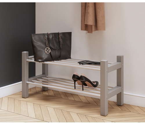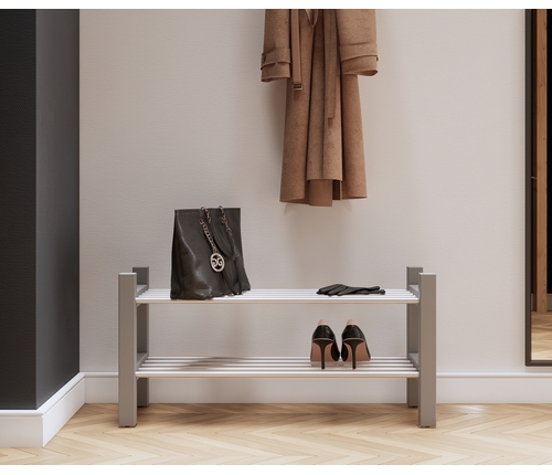 Компактная обувница Мича состоит из двух полок из прочной металлической решетки обеспечивают вентиляцию обуви и предотвращают скопление грязи.