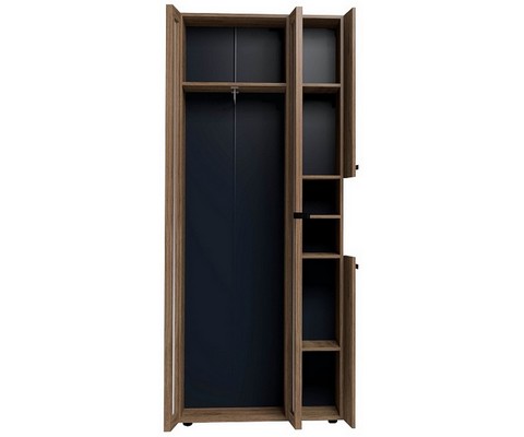 Шкаф оснащен выдвижной штангой, полкой над штангой, рядом полок, которые можно регулировать по высоте.