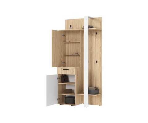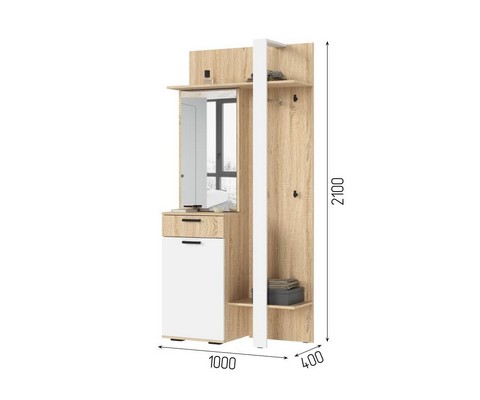 Включает в себя обувницу, тумбу и вешалку.
