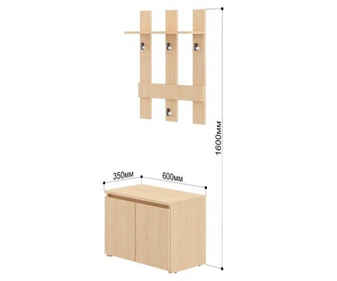Вешалка содержит 3 крючка и удобную открытую полку для верхних головных уборов.