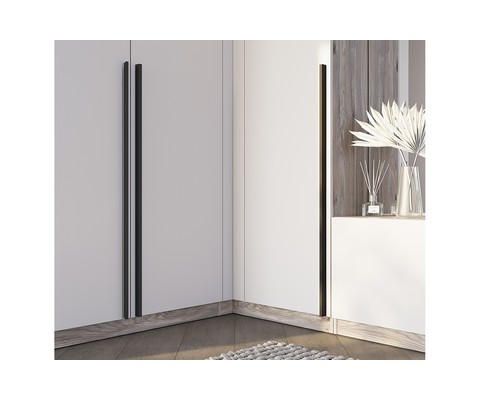 Накладная пластиковая ручка черного цвета добавляет шкафам современный и лаконичный вид.