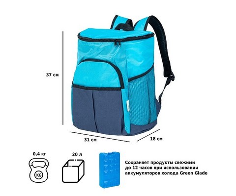 Изотермический рюкзак-холодильник Green Glade P2220 20 л позволяет переносить еду и ланч-боксы, сохранять продукты в охлажденном виде до 12 часов.