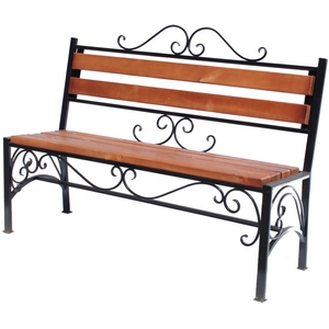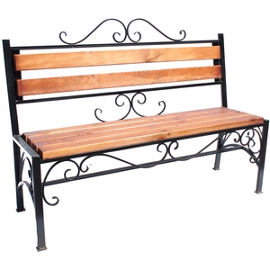 Дополнительная информация: скамейка со спинкой и кованными элементами, удобная и качественная, произведена из стали марки СТ-3 и дерева, с покрытием.