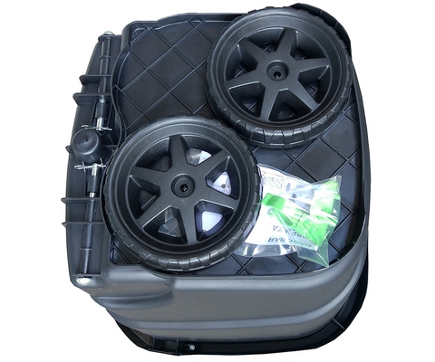 У тачки есть вмонтированная ручка и пластиковые колёса.