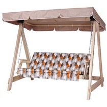 Садовые качели СЕЛЕНА 3.0 трехместные деревянные без покраски, с матрасом (бежевый тент / матрас листья)