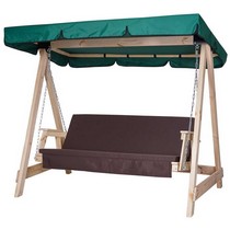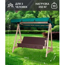 Садовые качели СЕЛЕНА 3.0 трехместные деревянные без покраски, с матрасом (зеленый тент / коричневый матрас)