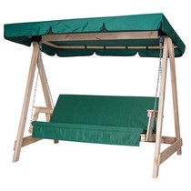 Садовые качели СЕЛЕНА 3.0 трехместные деревянные без покраски, с матрасом (зеленый тент / зеленый матрас)