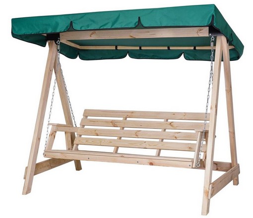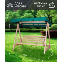 Садовые качели СЕЛЕНА 3.0 трехместные деревянные, без покраски (зеленый тент)