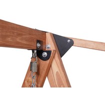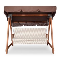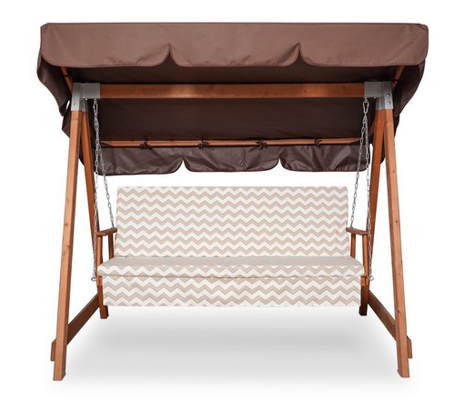 Садовые качели СЕЛЕНА 3.0 трехместные деревянные, с матрасом и покраской (коричневый тент / матрас зигзаг)