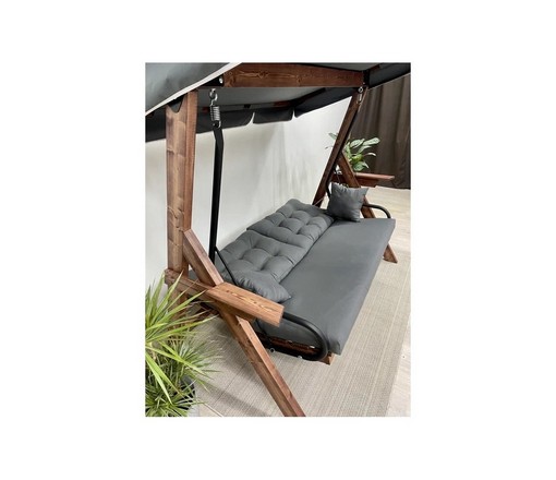 Садовые качели трёхместные Корсика с матрасом Сосна/серый