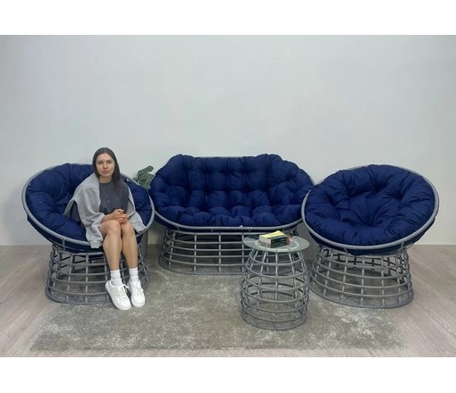 Садовый комплект из искусственного ротанга FLATA серый/синий