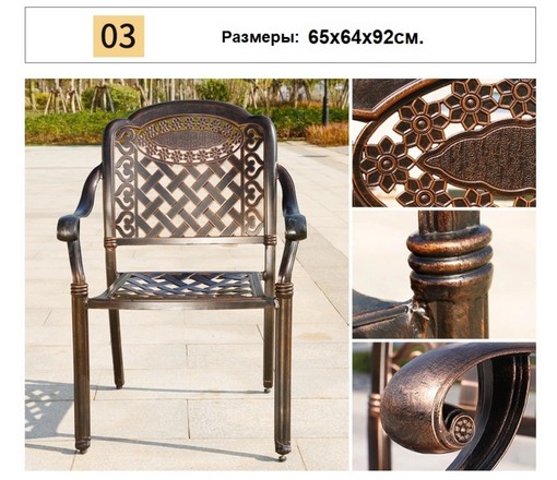 Комплект изготовлен из литого алюминия, что обеспечивает его прочность и устойчивость к воздействию влаги и солнечных лучей.