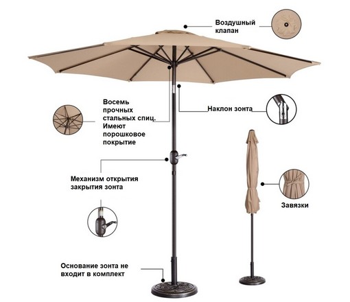 Зонт Колвилл (Coalville) для установки на открытом воздухе, в саду или на пляже, летнем кафе или в зоне отдыха.