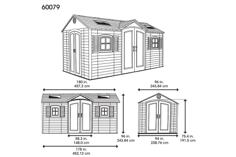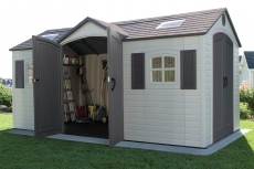 Пластиковый сарай LifeTime 15x8 самый большой из представленных, отличается вместимостью и двойным входом.