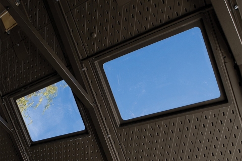 2 окна в фасаде сарая, 6 малых световых люков в крыше.