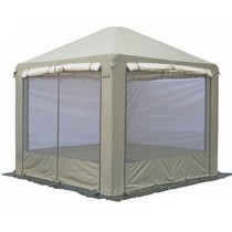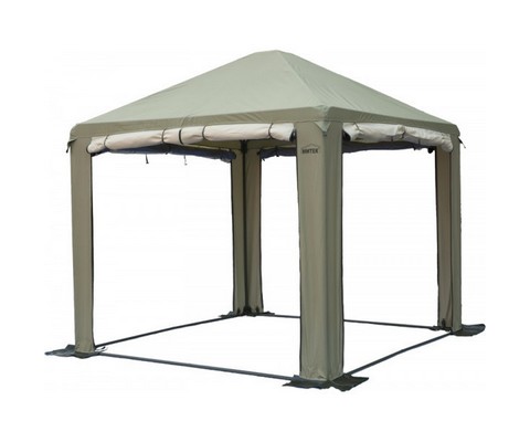 В комплекте каркас, крыша с ножками, 2 сплошные стенки, 2 стенки с окнами и 4 стенки из антимоскитной сетки.