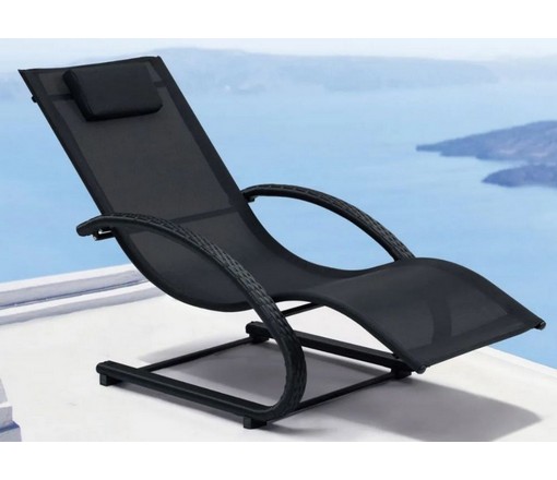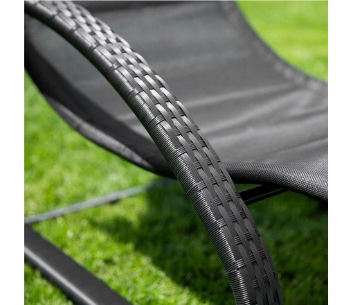 Материалы изделия: алюминий (каркас), искуственный ротанг (подлокотники), текстилен (ткань).