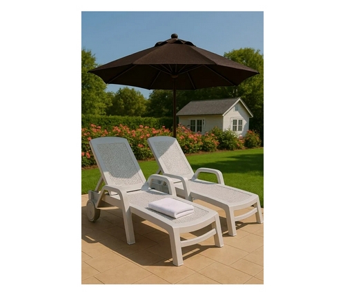 Поверхность лежака имитирует классическое ротанговое плетение.
