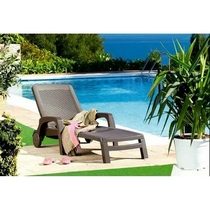 Поверхность лежака имитирует классическое ротанговое плетение.